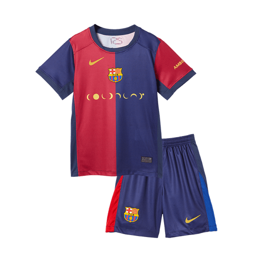 Kid's Barcelona X Coldplay Home Soccer Jersey Kit(Jersey+Shorts) 2024/25 Red&Blue