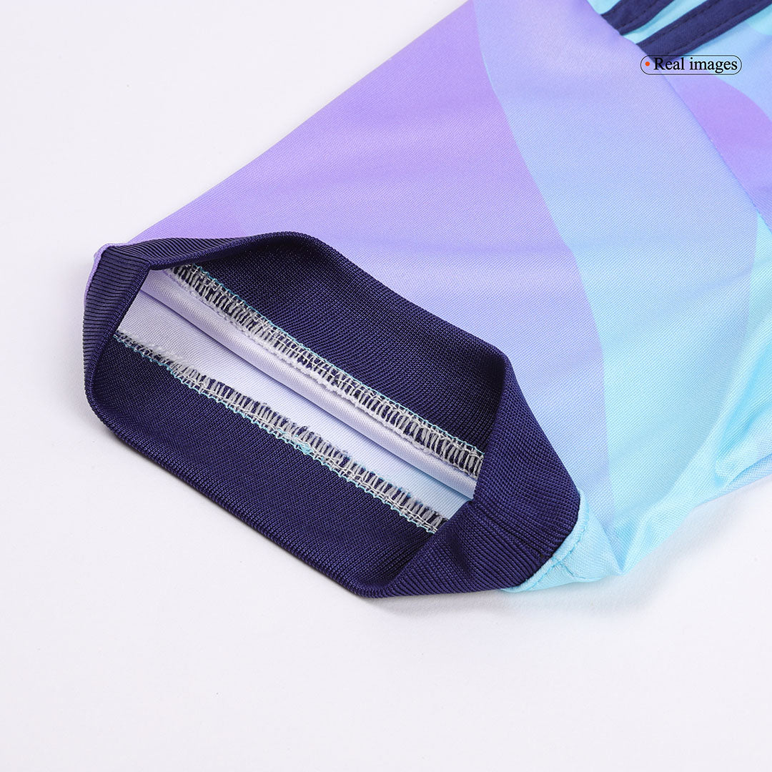 The 2024¨C25 Arsenal Third Away Jersey features a new, light blue gradient color scheme that represents creativity and contemporary play. This jersey is a unique piece for game days or casual wear because of its cool, soothing style, which lets female supporters support Arsenal in a stylish and distinctive way.